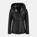 Elara Women’s Hooded Leather Sherpa Shearling Coat
