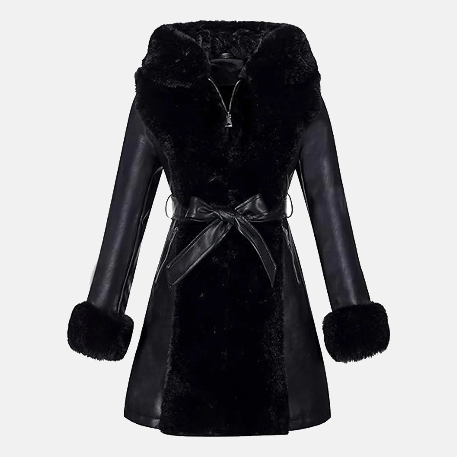 The Elegance Women Furry Long Leather Coat is great for different occasions—if you’re dressing up for a night out or running errands. It’s a great choice for those looking for cheap leather coats that don’t compromise on quality. Also available in plus-size leather coats and jackets, this design is suitable for a wide range of body types.