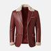 This blazer works as a mens Christmas jacket because of its red color and Santa-style look. The white faux shearling fur collar and cuffs give a soft winter look and make the blazer look festive. The button closure has a clean finish and sits neatly on the body. The fit is straightforward, making it easy to pair with jeans, black pants, or a plain sweater. It works well as a Christmas jackets for men option, still being usable as a mens leather blazer for regular winter outings.