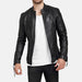 Velin Diamond Pattern Quilted Black Leather Biker Jacket