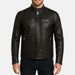 It is made from genuine lambskin. This mens leather motorcycle jacket is soft, flexible, and long-lasting. The smooth finish keeps it easy to wear all day. The high-quality leather makes this leather biker jacket mens reliable for daily use and long rides.