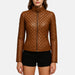 Available in brown, this quilted jacket womens design pairs well with jeans, skirts, or casual trousers. The earthy tone makes it versatile and easy to style.